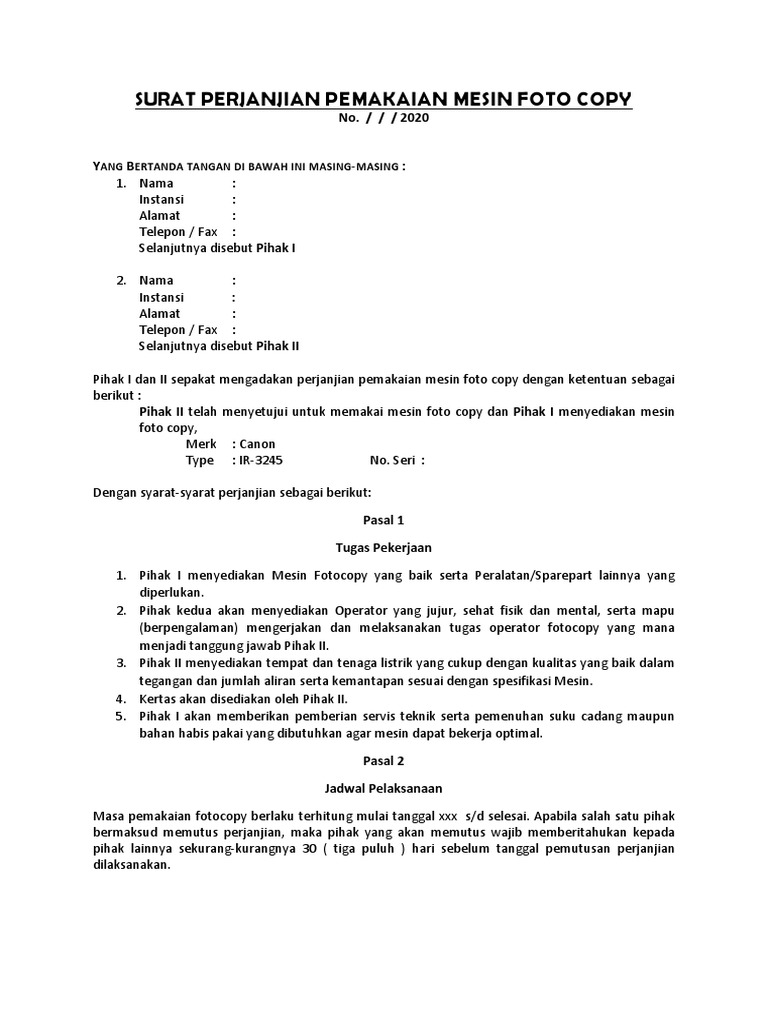 Surat Perjanjian Pemakaian Mesin Foto Copy Contoh Pdf